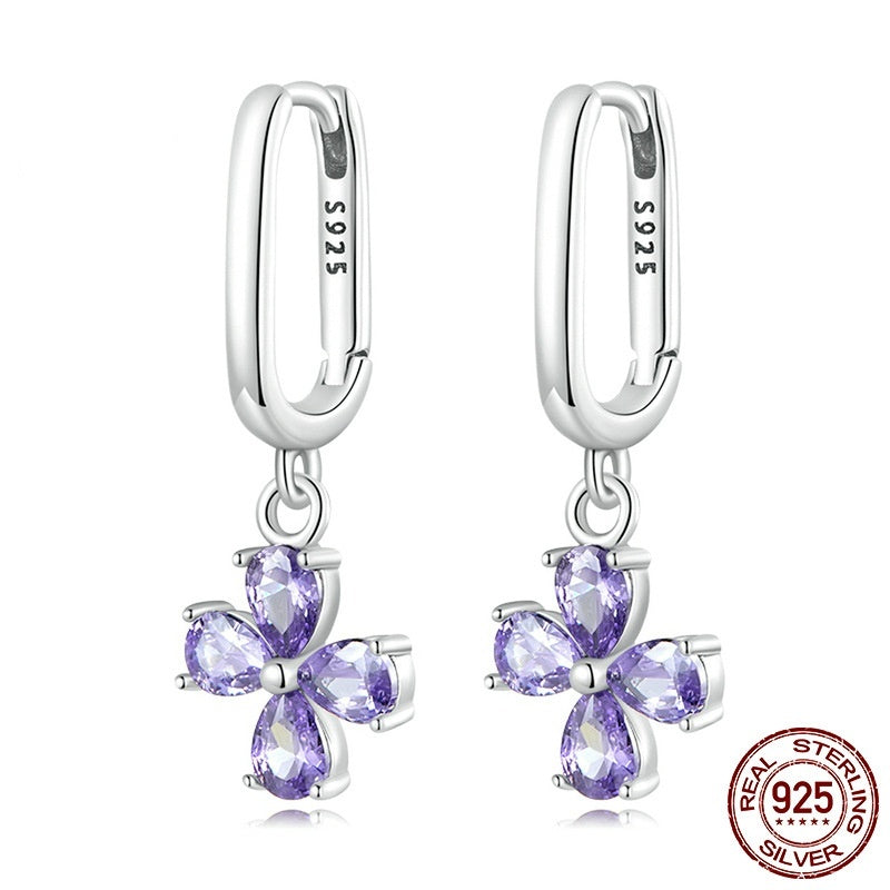 Sterling Silver Purple Zirconium Flower Purple Zircon