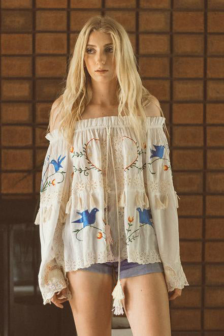 Women's Flower Embroidered Hollow-out Shirt Top